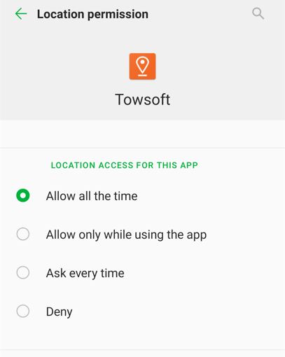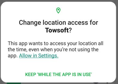 As with just about any other app you will download from the Google Play Store (Android), the TowSoft mobile app requires certain permissions to function properly.