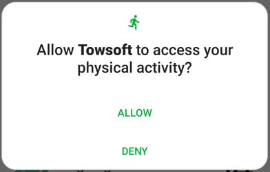 3- Allow TowSoft to access your physical activity → Don’t think that TowSoft wants to know when you are exercising! In fact, as mentioned above, this permission will allow the app to stop tracking your location you when you are no longer in motion in order to save your battery. Press “Allow”.