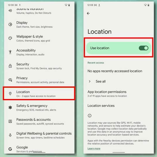 [ATTENTION] There is also a main switch (Settings > Location) where the sharing of your location/position for your mobile device IN GENERAL, i.e. for all apps that want to use it, can be managed (see screenshot below). If access is not also provided there, positions will not be reported whether you have allowed the apps to access them or not.
