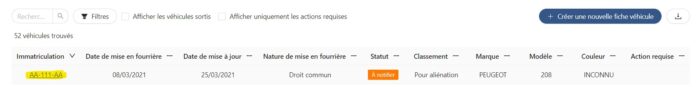 À partir du tableau de véhicules en fourrière, veuillez cliquer sur le numéro de mission dans la première colonne pour accéder à la fiche de mission. Une fois dans la fiche de mission, vous verrez le bouton en haut à droite de l’écran, parmi les autres boutons. Si le bouton est en rose, c’est que vous n’êtes pas connecté à au SIF. Toutefois, s’il est en bleu, vous pourrez dès lors, créer un dossier au SIF.