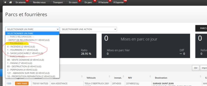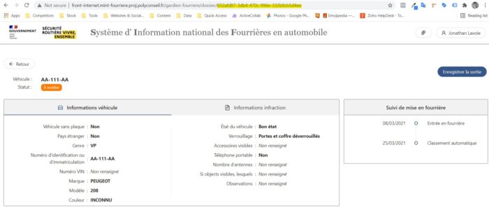 Section SI Fourrière, connexion active