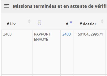 Comme une mission doit être terminée pour que vous puissiez produire le rapport, c’est dans l’onglet des missions « À facturer » que vous pourrez consulter le statut NOMAD pour l’ensemble des missions et voir les rapports qui doivent être produits. C’est dans la colonne avec l’icône NOMAD que vous verrez ce qui doit être fait.