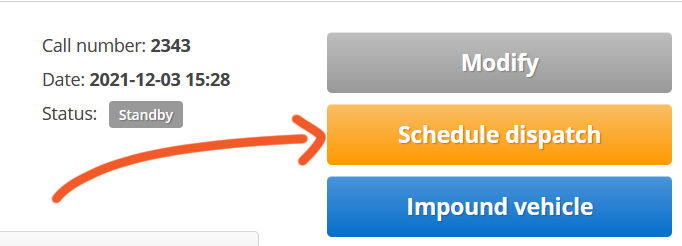 First, to be able to schedule the dispatch of a call, the call itself obviously needs to be already in the “scheduled status”. That said, it is only from the “Scheduled Calls Screen” or from the “Call Details Screen” of a scheduled call that you will be able to perform this operation: